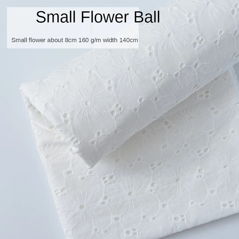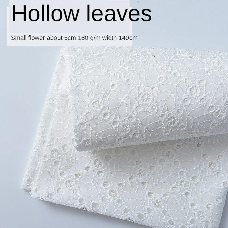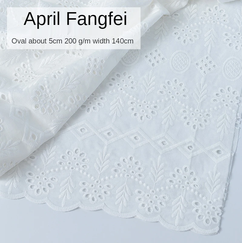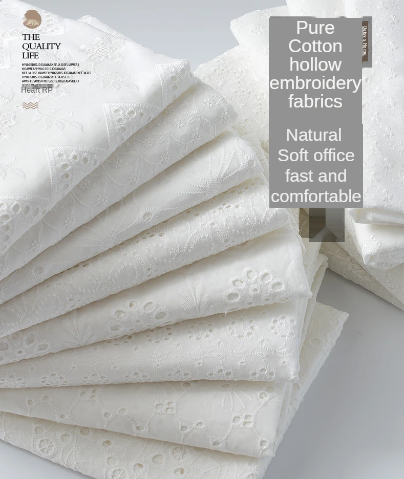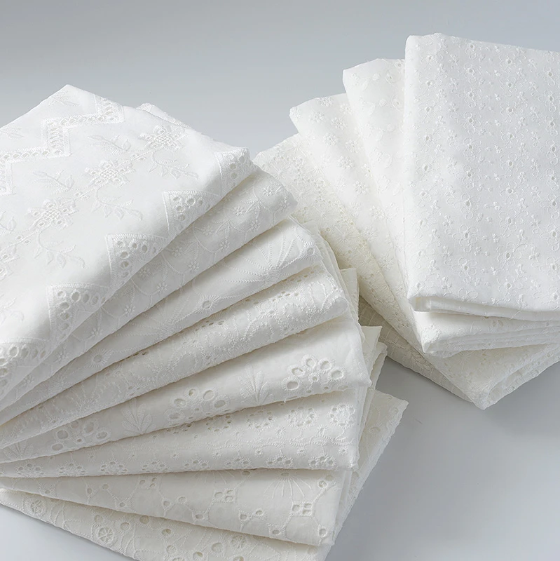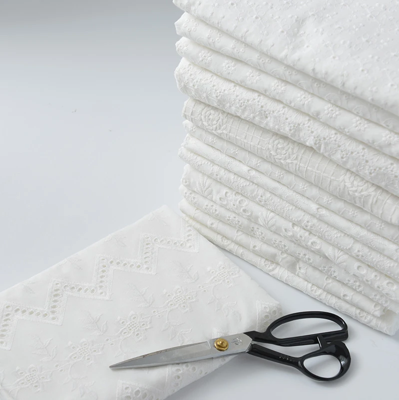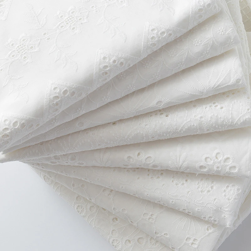 Embroidery White Lace Fabric Pure Cotton By The Yard for Wedding Dress Fashion Skirt Sew Hollow Cloth Summer Textile Per Meter