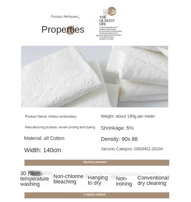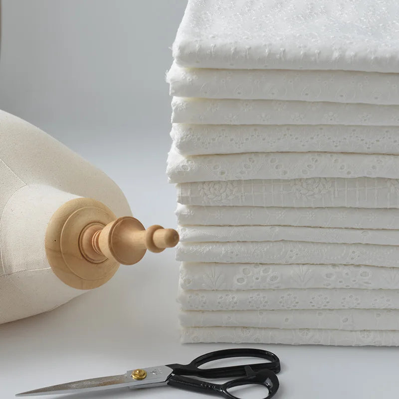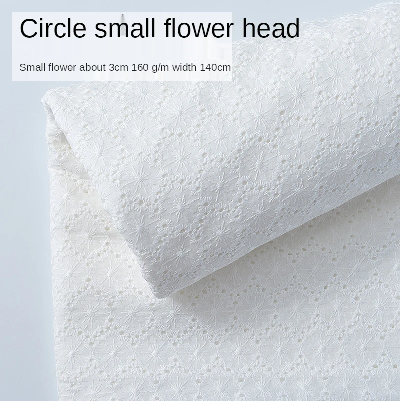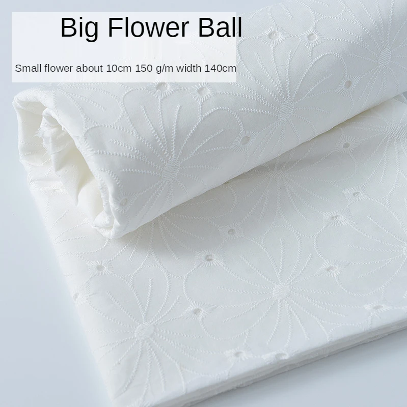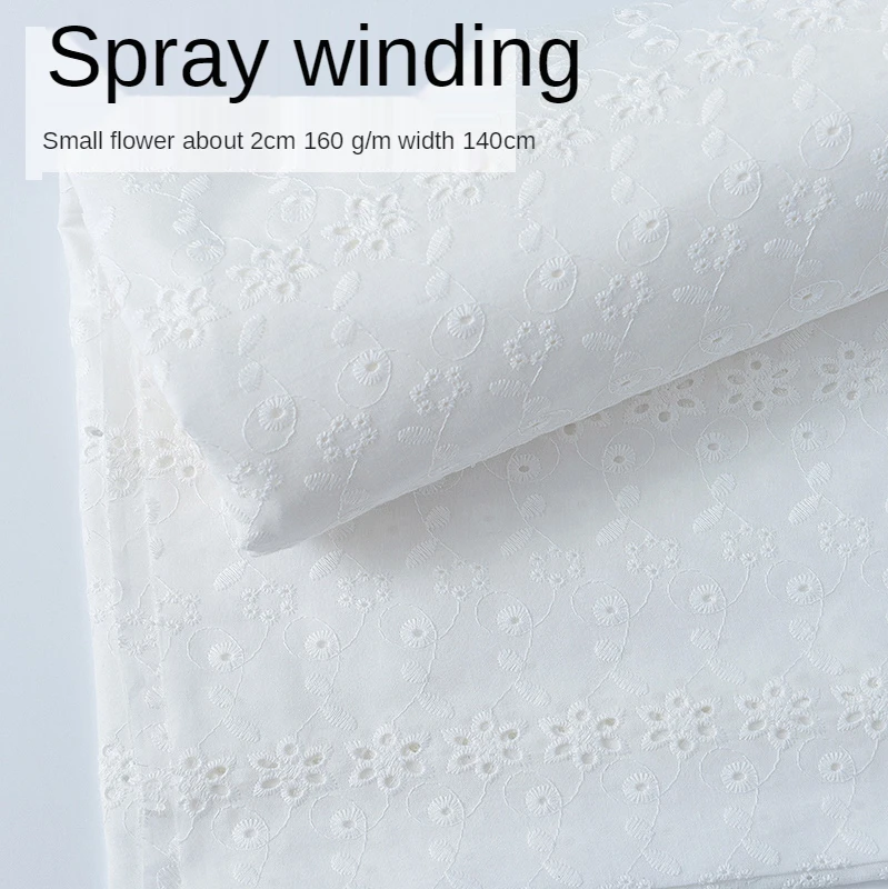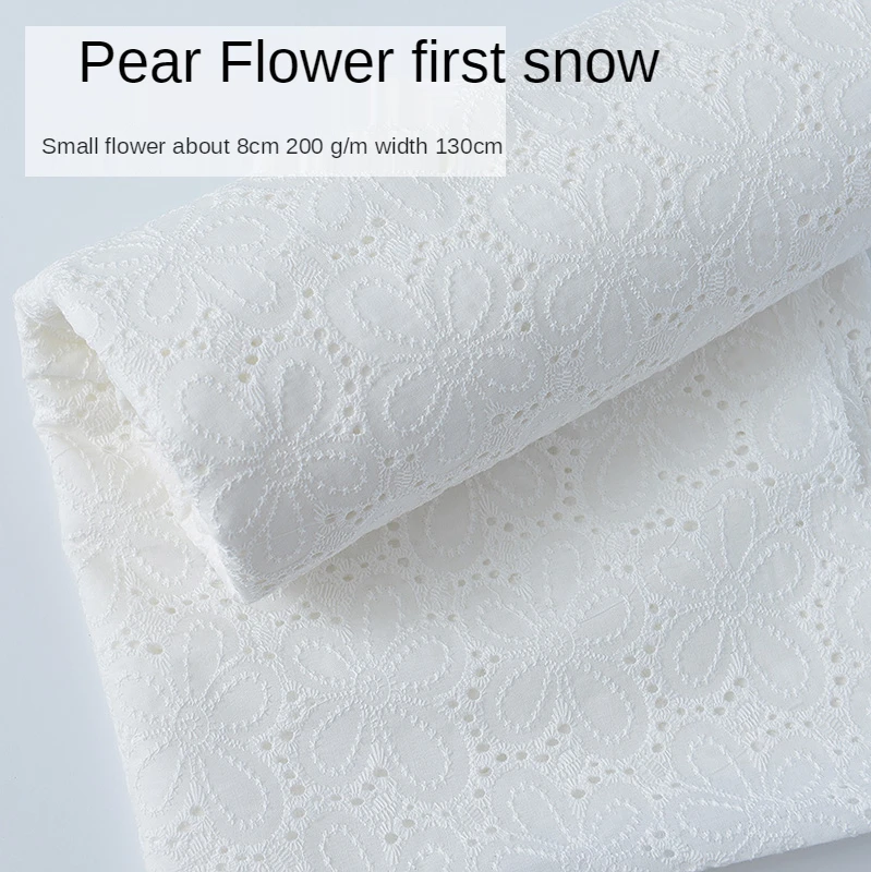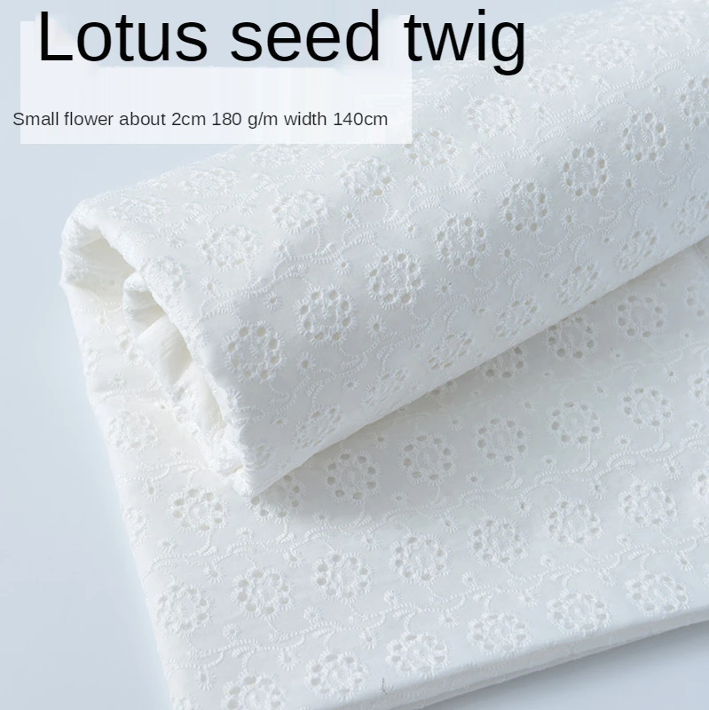 Embroidery White Lace Fabric Pure Cotton By The Yard for Wedding Dress Fashion Skirt Sew Hollow Cloth Summer Textile Per Meter